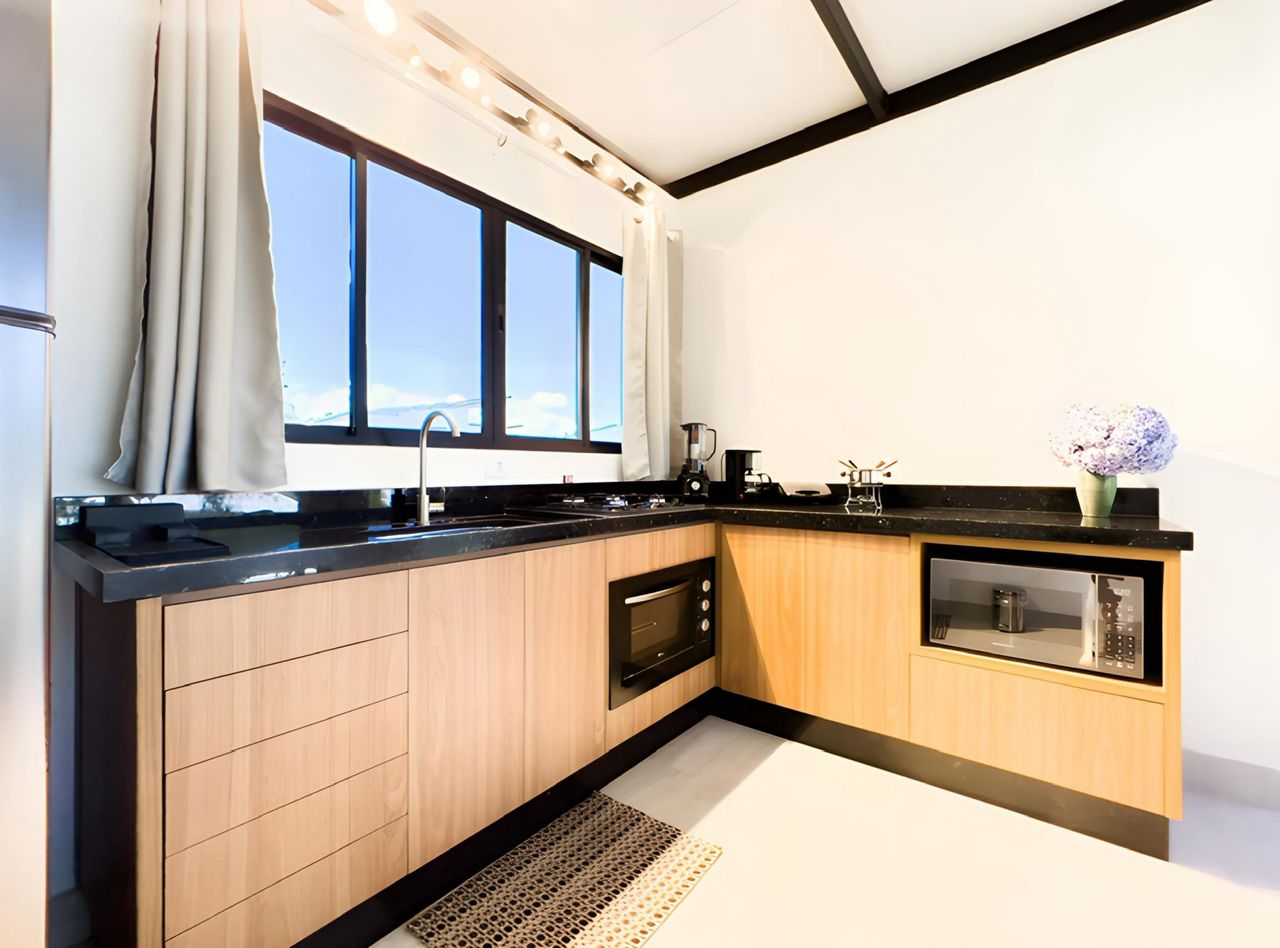Cozinha equipada (Fogão, Geladeira, Forno, Microondas, sanduicheira, Chaleira Elétrica, Liquidificador)