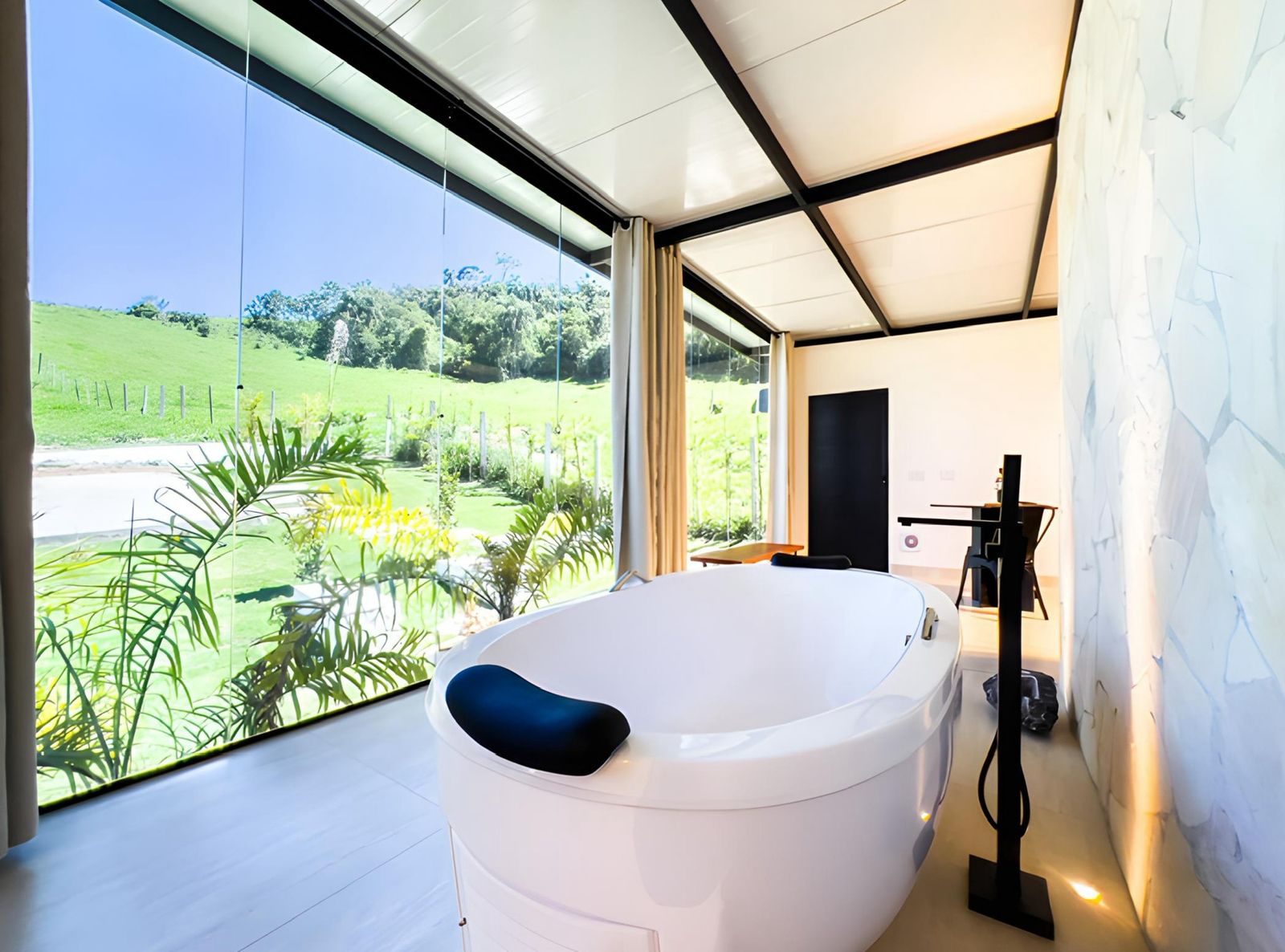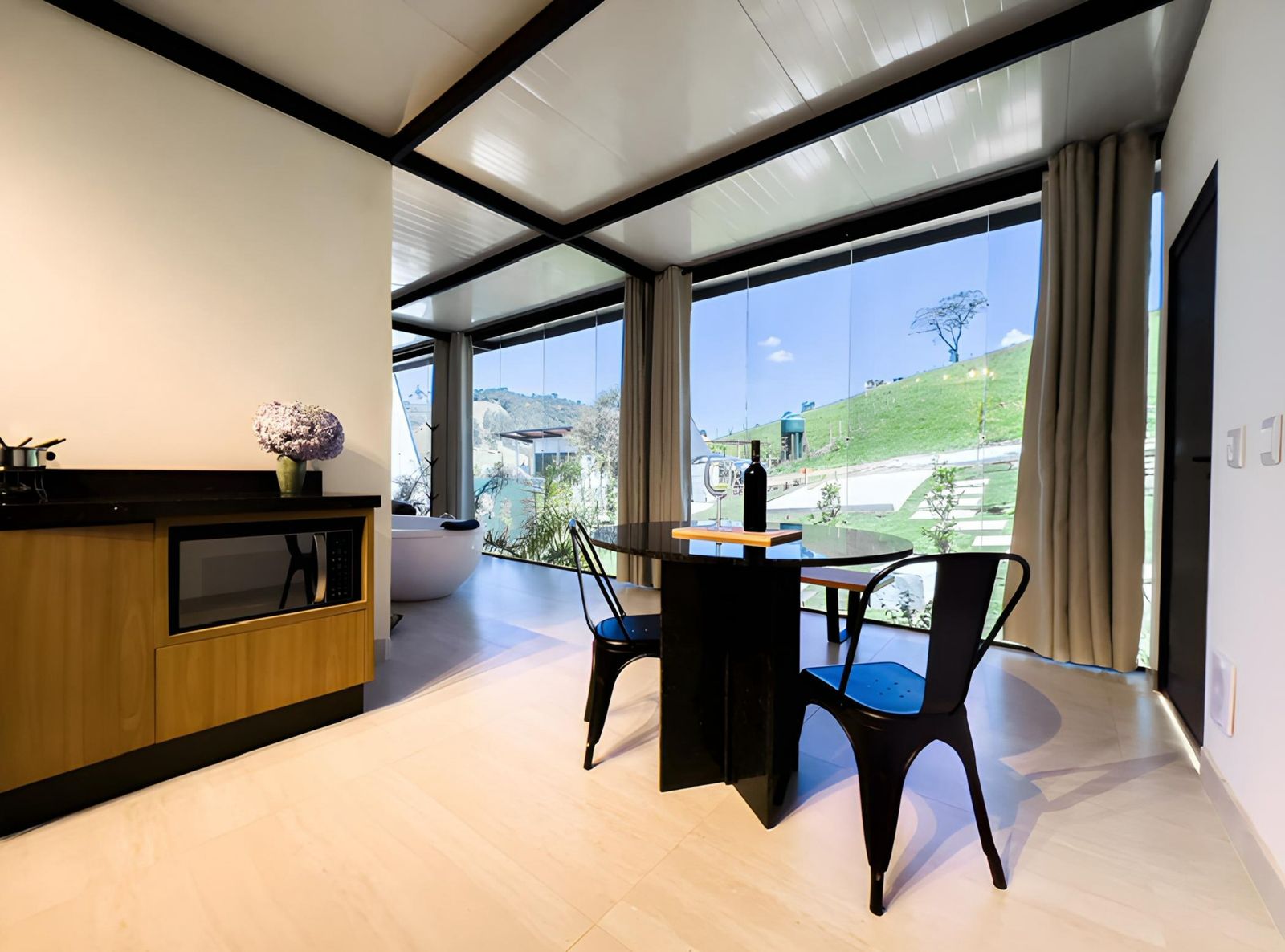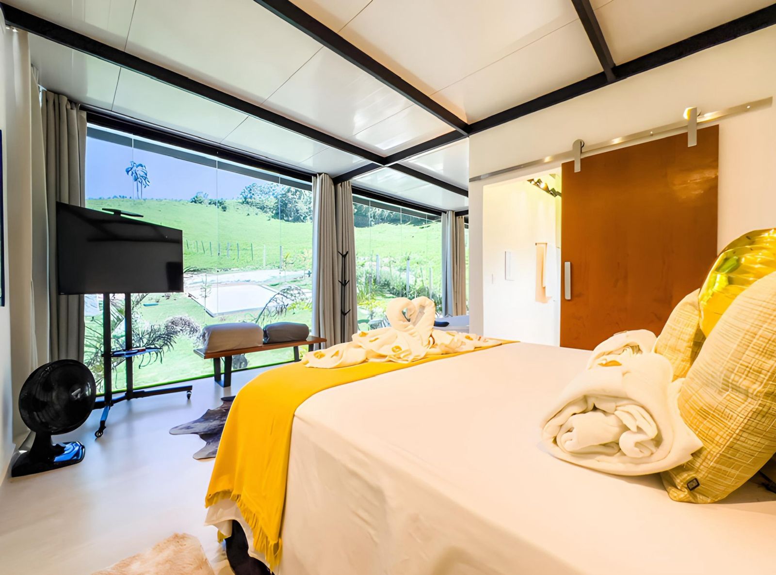 Com vista para a natureza, o Chalé Amêndoa proporciona um clima leve e tranquilo.